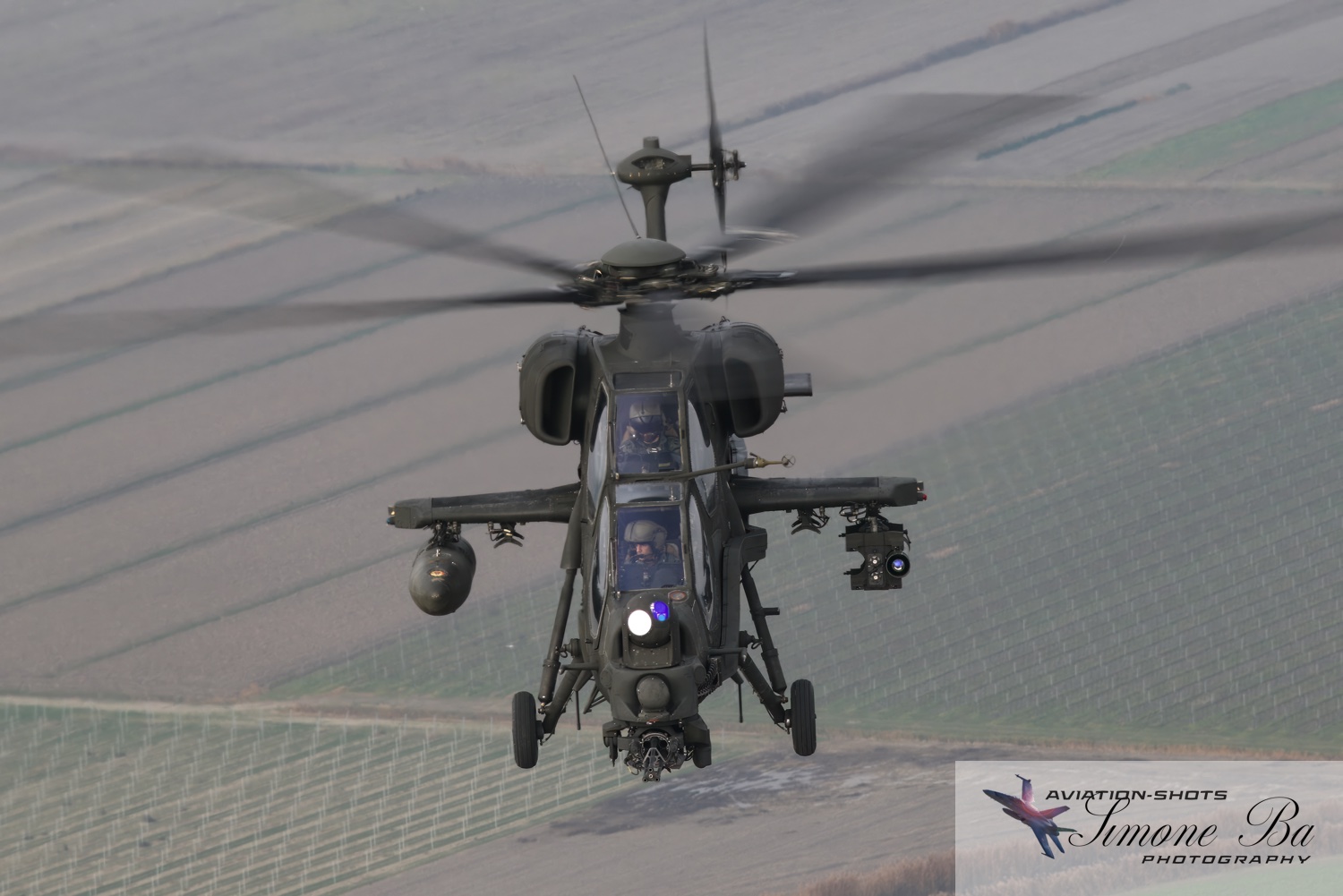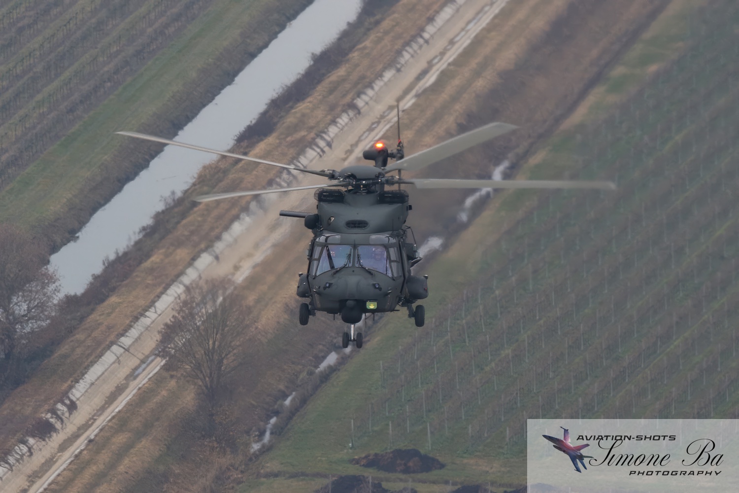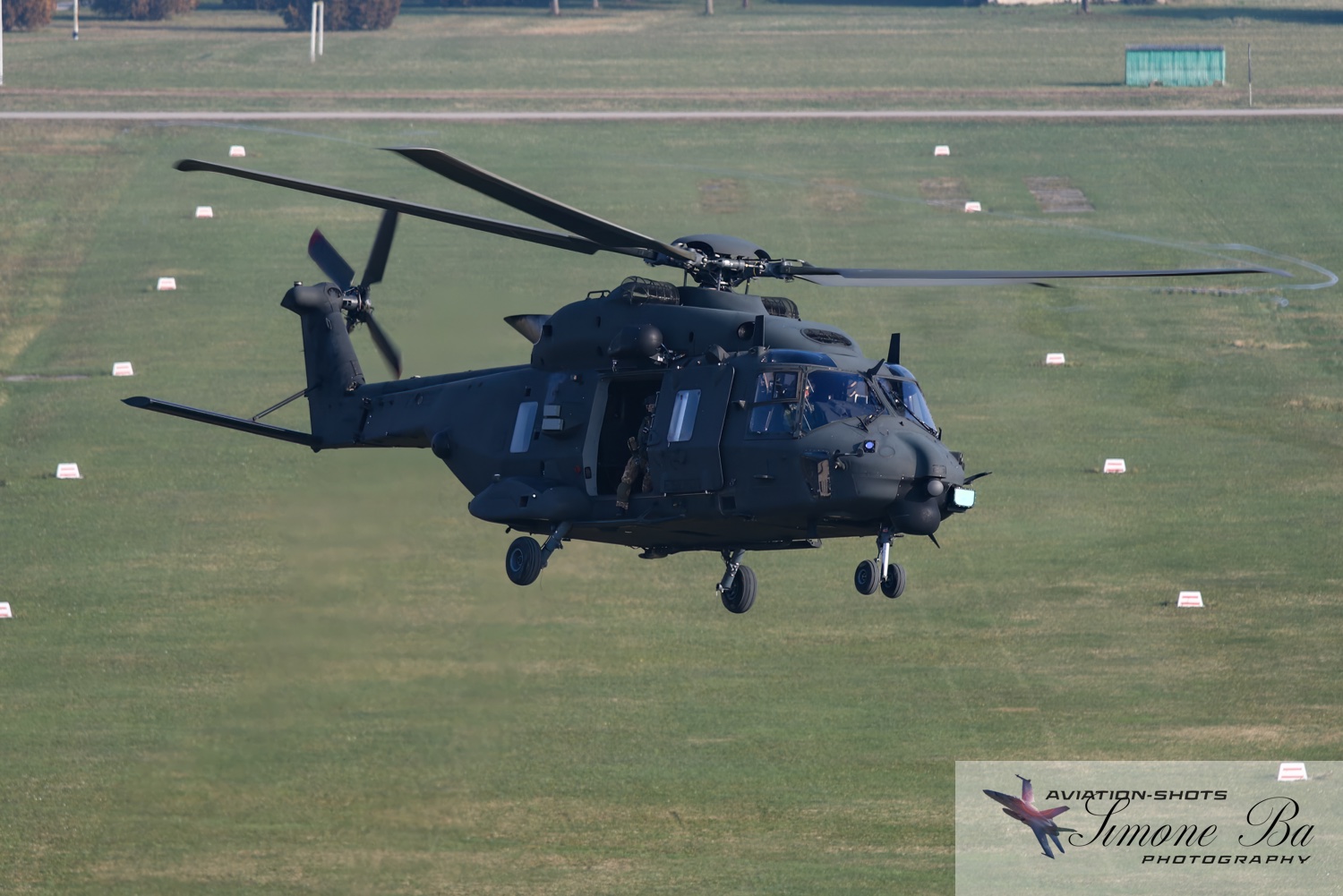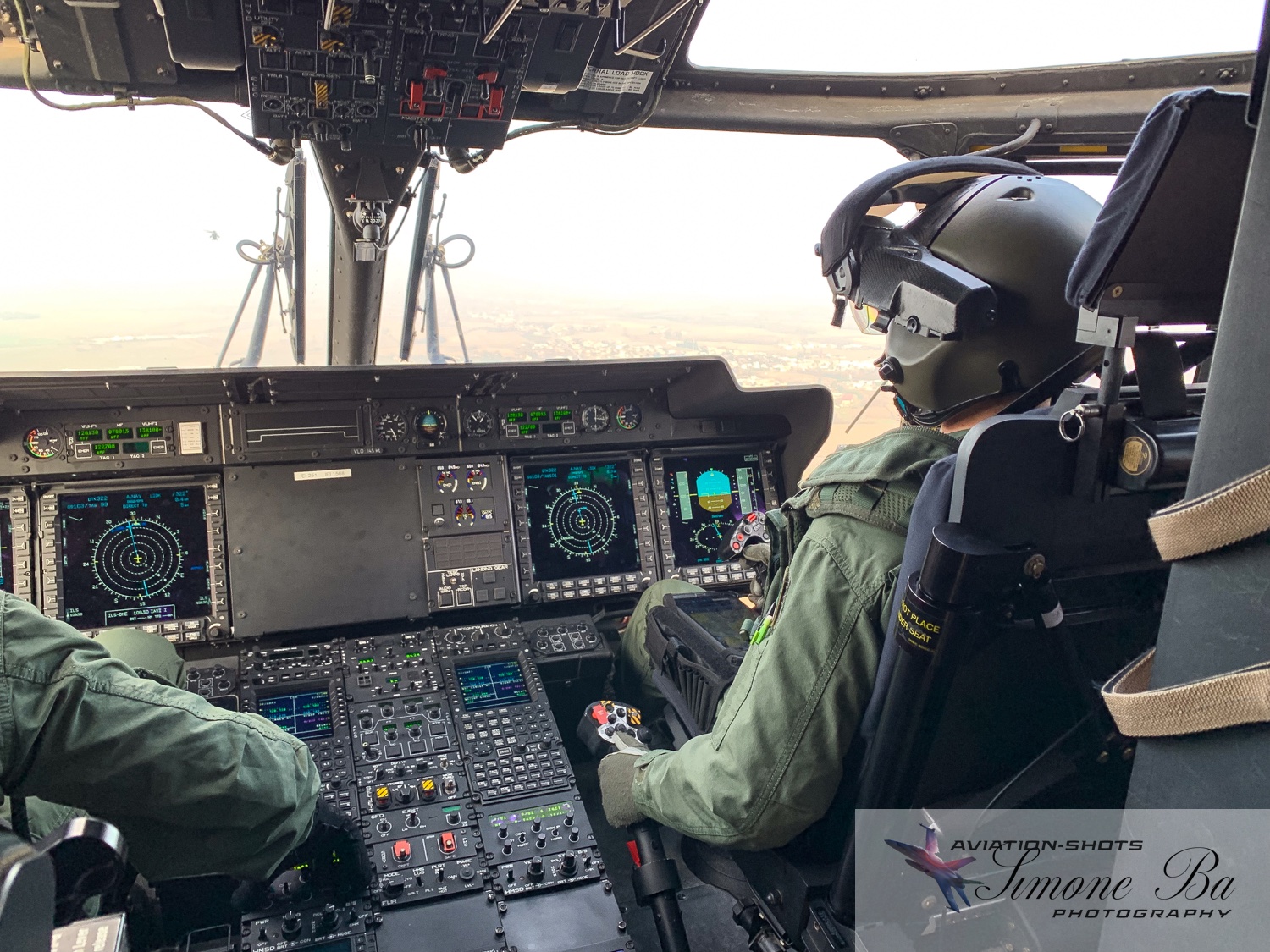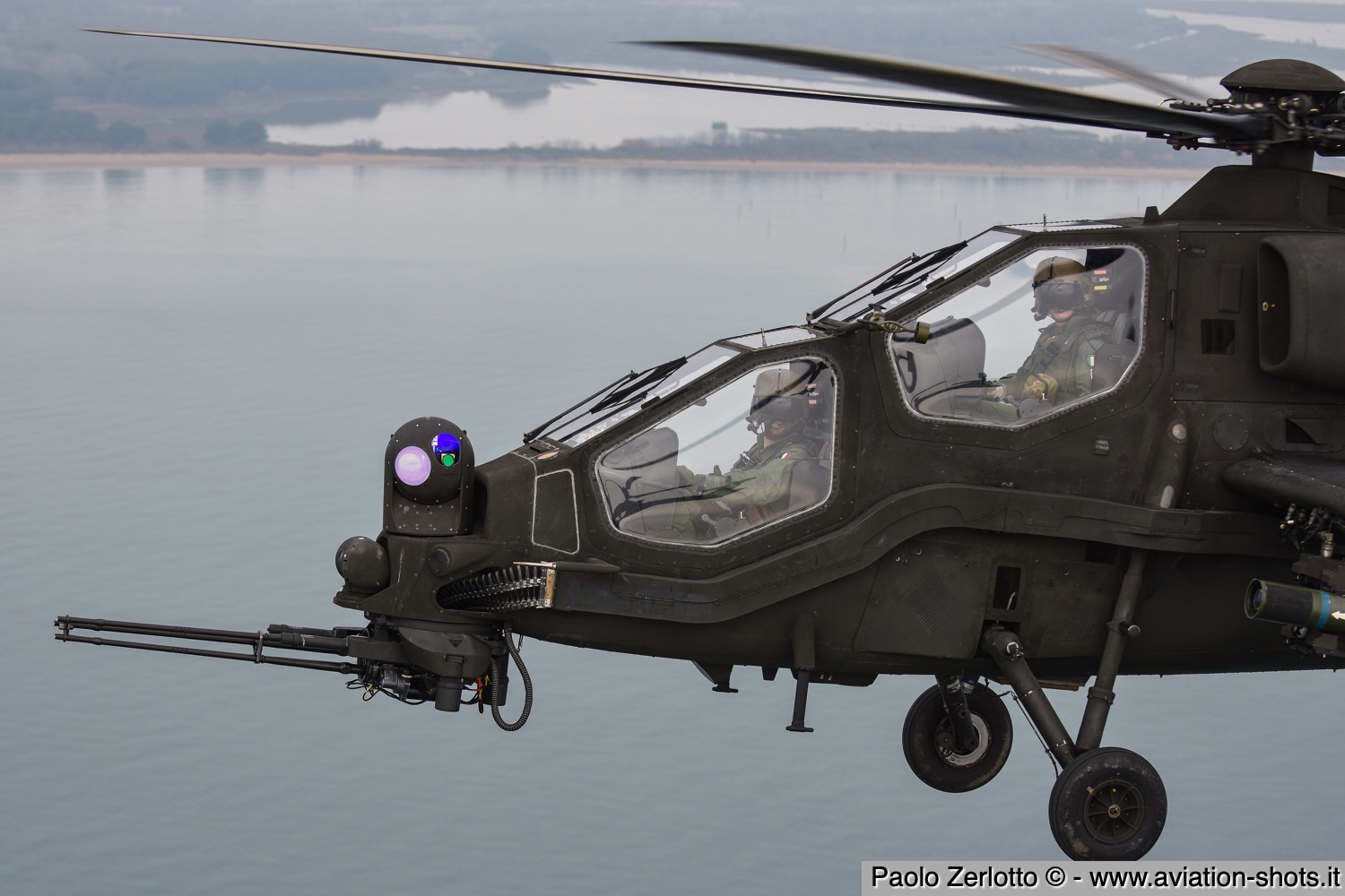 La missione è principalmente incentrata sulle riprese fotografiche in volo degli assetti in dotazione al 27° ed al 49° Gruppi Sqd. AVES. Andremo in volo con quattro elicotteri: due UH-90A e due AH.129D. Ci spostiamo quindi nell’aula briefing del 27° “Mercurio” dove incontriamo gli equipaggi che prenderanno parte alla missione. A condurre il briefing è il Tenente Colonnello W.M., ex pilota e collaudatore di A.129 e pilota di UH-90A. Una volta condivisa la tipologia di foto che vorremmo fare e come posizionare gli elicotteri nelle varie fasi del volo, viene deciso che seguiremo il corso del fiume Tagliamento fino al mare per poi procedere lungo costa fino a Caorle; al rientro seguiremo la stessa rotta dell’andata. Le condizioni metereologiche prevedono nubi sparse con visibilità di qualche chilometro in pianura; sul mare la visibilità dovrebbe migliorare lasciando spazio anche ad un po’ di sole. Terminato il briefing ci rechiamo nell’hangar dove sono custoditi gli equipaggiamenti di volo. Indosseremo una speciale imbragatura con agganciata una fune di colore rosso che verrà fissata al punto di ancoraggio sul tetto dell’elicottero, consentendoci la massima libertà di movimento in tutta sicurezza anche con la rampa posteriore e portelloni laterali aperti. Ci viene accuratamente spiegato come indossarla e regolarla; in particolare ci viene illustrato come liberarci dal cavo di ancoraggio all’elicottero in caso di emergenza: bisogna tirare verso il basso un’apposita maniglia rossa posizionata nella tasca destra del giubbotto. Una volta indossata l’imbragatura saliamo a bordo degli UH-90A; l’operatore di bordo aggancia la fune rossa all’elicottero e la regola in lunghezza sulla base degli spostamenti che dovremmo fare all’interno della cabina. Potremo muoverci liberamente da un portellone all’altro, perché saranno entrambi aperti per tutto il tempo della sessione fotografica. Indosseremo anche delle cuffie con le quali potremo parlare con tutti i membri dell’equipaggio e dare disposizioni su come meglio posizionare la formazione durante il volo. I piloti iniziano la sequenza di accensione dei motori seguendo una check-list che richiede diversi minuti per essere completata. Decolliamo alle 11:30. La formazione composta dai due AH.129D e dai due UH-90A si compatta e si dirige ad est fino a raggiungere il vicino fiume Tagliamento. A questo punto viriamo a sud e l’UH-90A leader si porta davanti alla formazione ed apre il portellone della rampa posteriore per fotografare frontalmente l’altro UH-90A ed i “Mangusta” in diverse posizioni, insieme e singolarmente. Non è una cosa facile perché il calore degli scarichi dei motori dell’UH-90A dal quale si fotografa produce un “haze” che può compromettere la nitidezza delle foto. Una volta raggiunto il mare in prossimità di Lignano Sabbiadoro, la formazione vira verso ovest procedendo lungo la costa in direzione di Caorle. Manteniamo una velocità di 60 nodi ed una quota di 1.000 piedi e non c’è turbolenza. Come previsto, sul mare la visibilità migliora e procediamo ora con le riprese fotografiche dai portelloni laterali. A turno entrambi gli UH-90A fotografano gli AH.129D a distanza ravvicinata, insieme o in coppia. Altri scatti consentono di fotografare insieme i “Mangusta” con uno dei due UH-90A. Una volta a Caorle invertiamo la rotta in direzione di Lignano per un’altra serie di scatti. Proseguiamo poi in direzione dell’aeroporto. Una volta arrivati alla base di Casarsa, l’UH-90A leader si posiziona di traverso sulla testata pista 60 per fotografare gli altri elicotteri della formazione che si abbassano sulla pista dalla direzione opposta. Alle fine tutti gli assetti si portano all’atterraggio sui rispettivi piazzali. La missione si conclude alle 12:30.